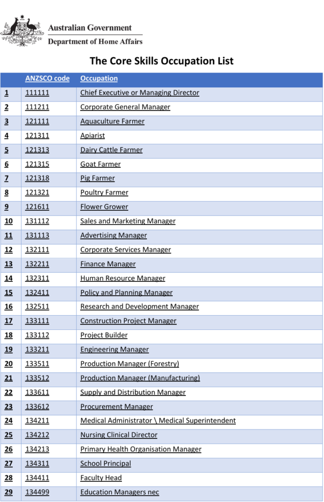 CSOL | Core Skills Occupation List — 456টি পেশা, Skills in Demand Visa (Subclass 482) ও ENS (Subclass 186) Direct Entry-এ প্রযোজ্য। |