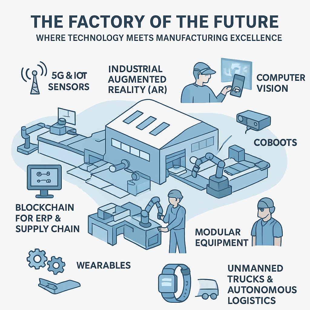 The Factory of the Future is not a distant vision but an evolving operating model. By sequencing the adoption of 5G IoT, AR, cobots, blockchain, modular equipment, wearables, and autonomous logistics, emerging economies can strengthen global competitiveness while advancing sustainability and resilience. Industry 5.0 is a technological, ecological, and ethical transformation that empowers humans while regenerating resources.