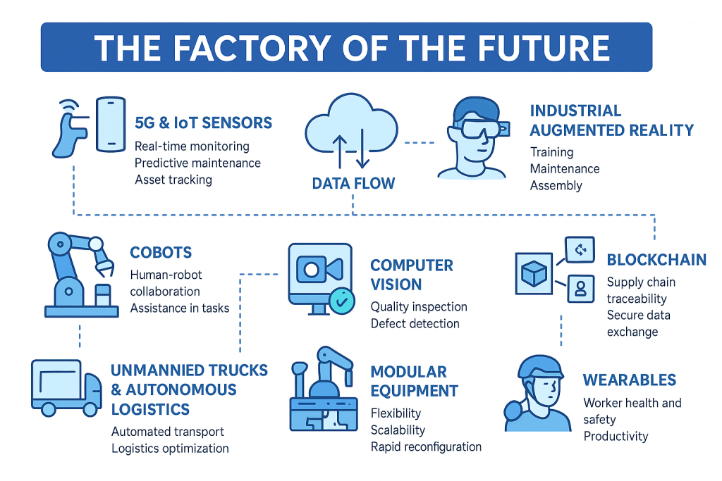 - Human-Centric Production: Enhanced safety, ergonomics, and training.